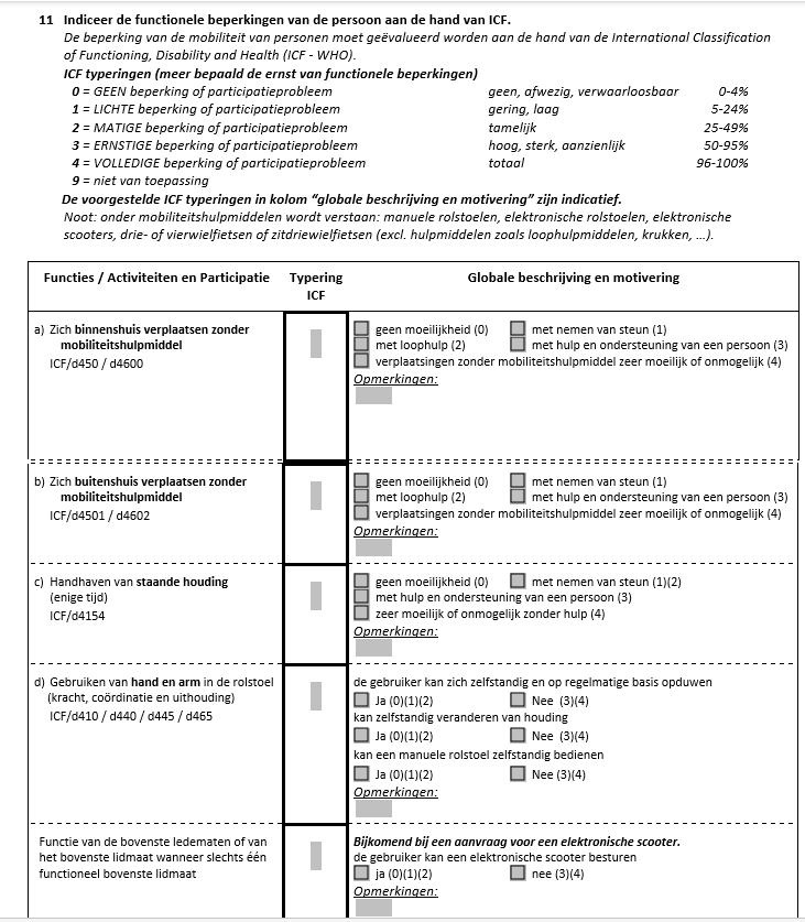 | (10) voor een 2de manuele rolstoel of duwwandelwagen gelden dezelfde ICF typeringen |