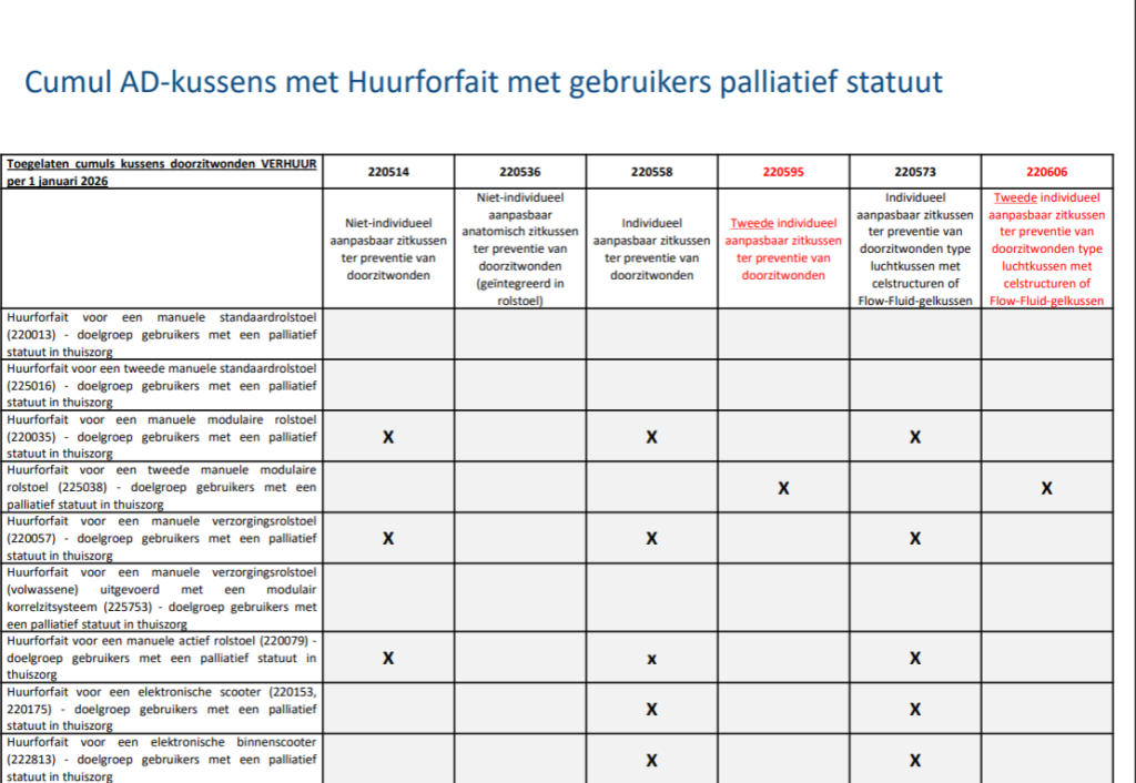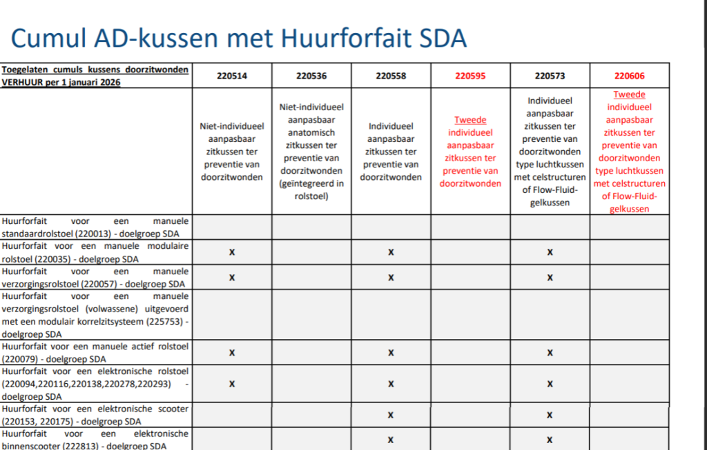 Uitsluiting cumul prestatie 220536 Niet-individueel aanpasbaar anatomisch zitkussen ter preventie van doorzitwonden (geïntegreerd in rolstoel) bij rolstoel verhuur: